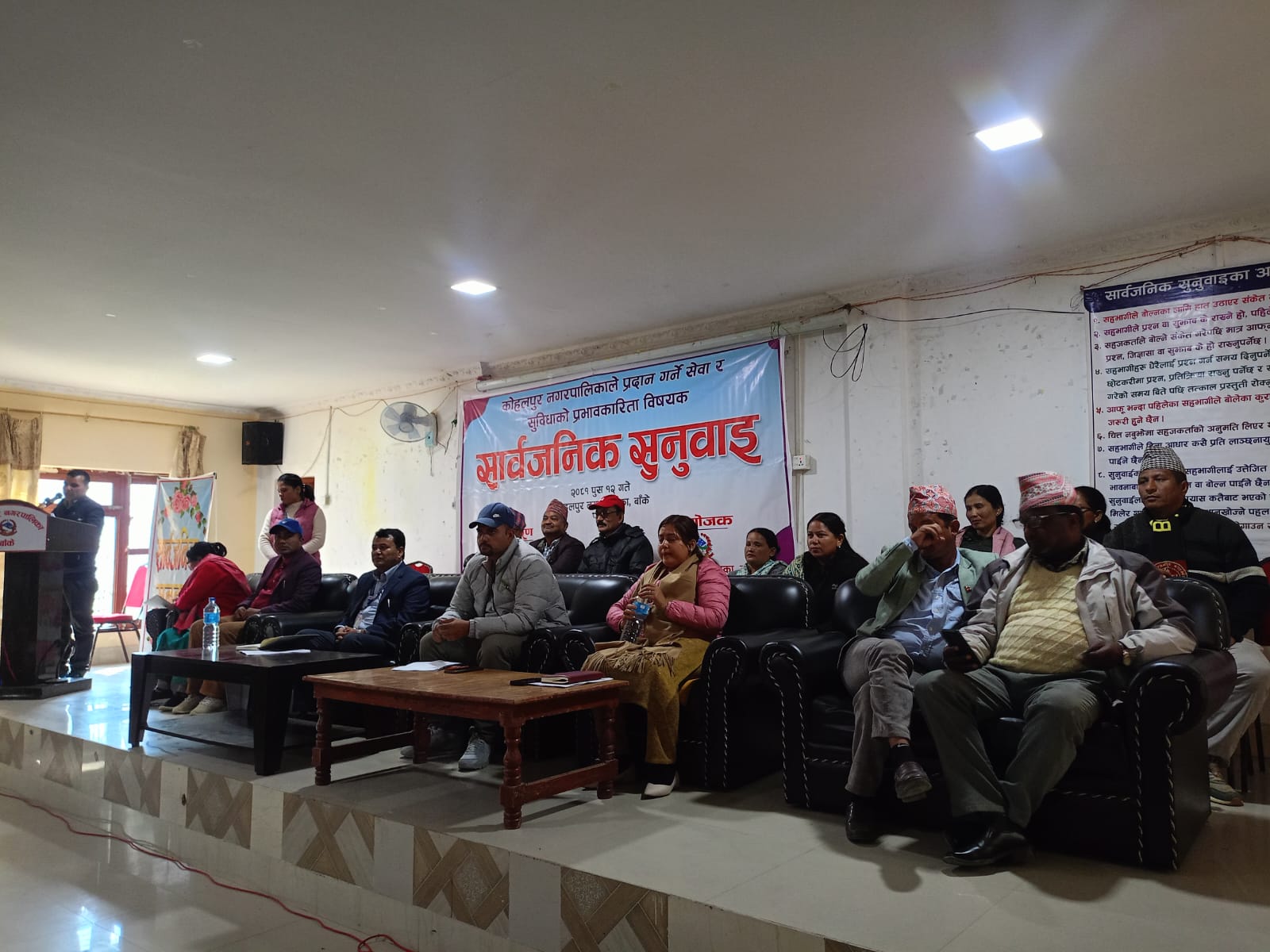 १२ पुष, बाँके । बाँकेको कोहलपुर नगरपालिकाले आ.व. २०८१/०८२ को पहिलो चौमासिकमा सम्पन्न भएका योजना, विकास निर्माण र सेवा प्रवाहको विषयमा सार्वजनिक सुनुवाई गरेको छ ।