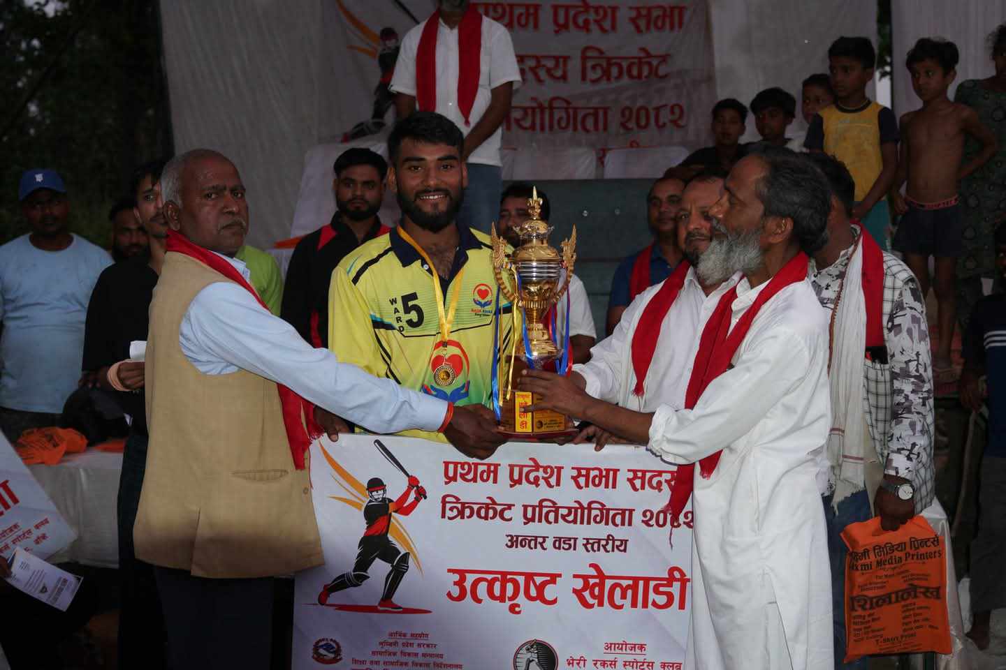 यस्तै, प्रतियोगिताको सर्वोत्कृष्ट खेलाडी नेपालगञ्ज–५ का शाहबाज खान भएका छन्, खान लाई ट्रफी सहित दश हजार प्रदान गरिएको छ,साथै उत्कृष्ट बलर नेपालगञ्ज ५ का दानिस खान र उत्कृष्ट ब्याट्सम्यान नेपालगन्ज १६ का अय्यूब अन्सारी लाई ट्रफी सहित ५/५ हजार पुरस्कार प्रदान गरिएको हो।