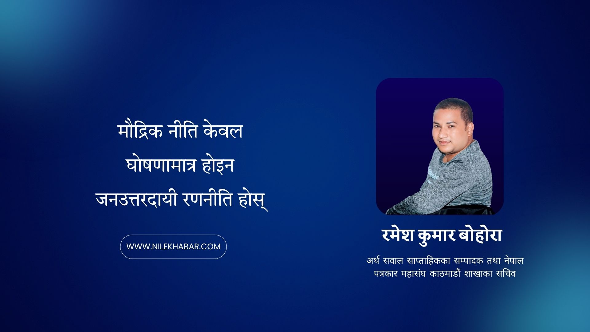 नेपाल राष्ट्र बैंकले आगामी आर्थिक वर्ष २०८२/०८३ का लागि मौद्रिक नीति निर्माणको प्रक्रिया आरम्भ गरिसकेको छ । प्रारम्भिक बहसहरू सुरु भइसकेका छन् तर मूल प्रश्न भने यथावत् छ के नेपालले स्वतन्त्र, वैज्ञानिक र देशको आर्थिक यथार्थमा आधारित मौद्रिक नीति ल्याउन सक्ला ?