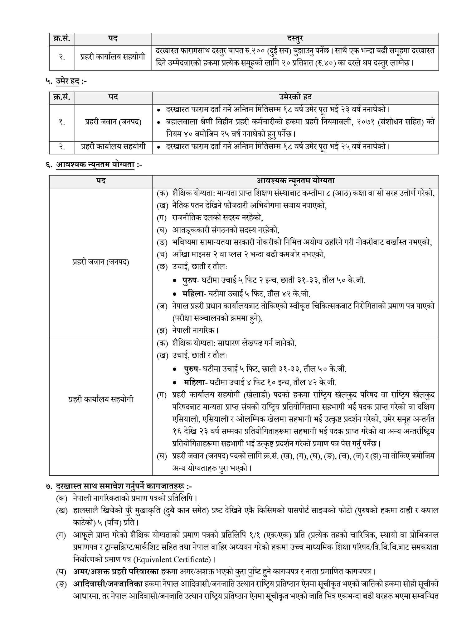 १० असोज, काठमाडौँ । नेपाल प्रहरीले ठूलो संख्यामा प्रहरी जवान र कार्यालय सहयोगी भर्नाको लागि दरखास्त आह्वान गरेको छ ।