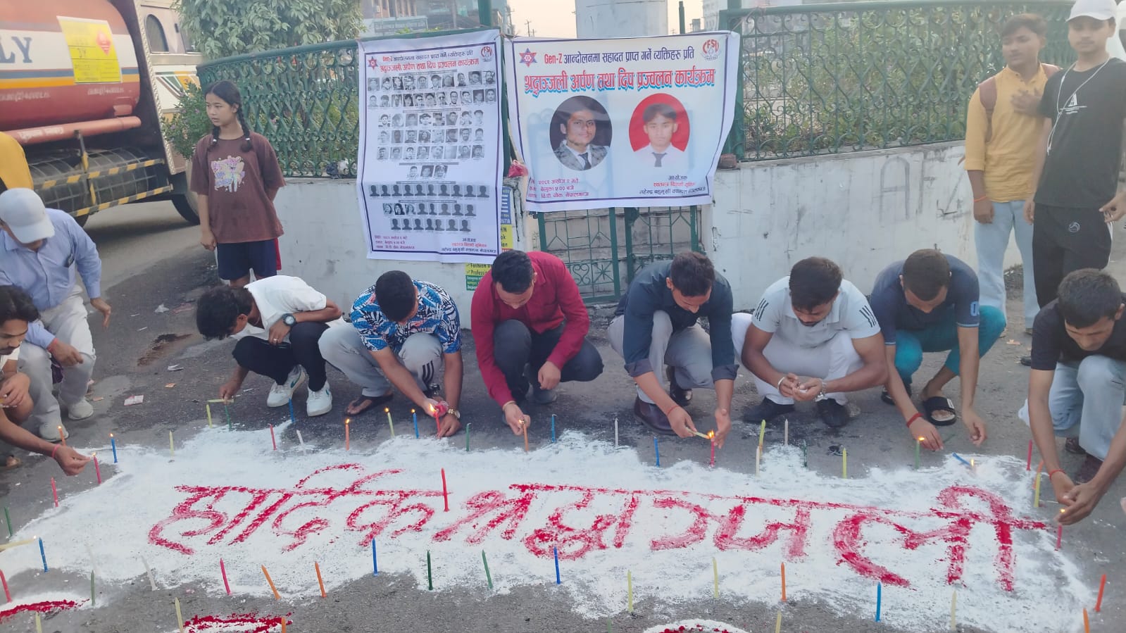 २ असोज, बाँके । यही भदौ २३ र २४ गते जेनजी आन्दोलनमा सहादत प्राप्त सहिद प्रति नेपालगञ्जमा श्रद्धाञ्जली अर्पण तथा दिप प्रज्वलन गरिएको छ । स्वतन्त्र विद्यार्थी युनियन महेन्द्र बहुमुखी क्याम्पसको आयोजनामा आज नेपालगञ्ज स्थित विपी चोकमा श्रद्धाञ्जली अर्पण गरिएको हो ।